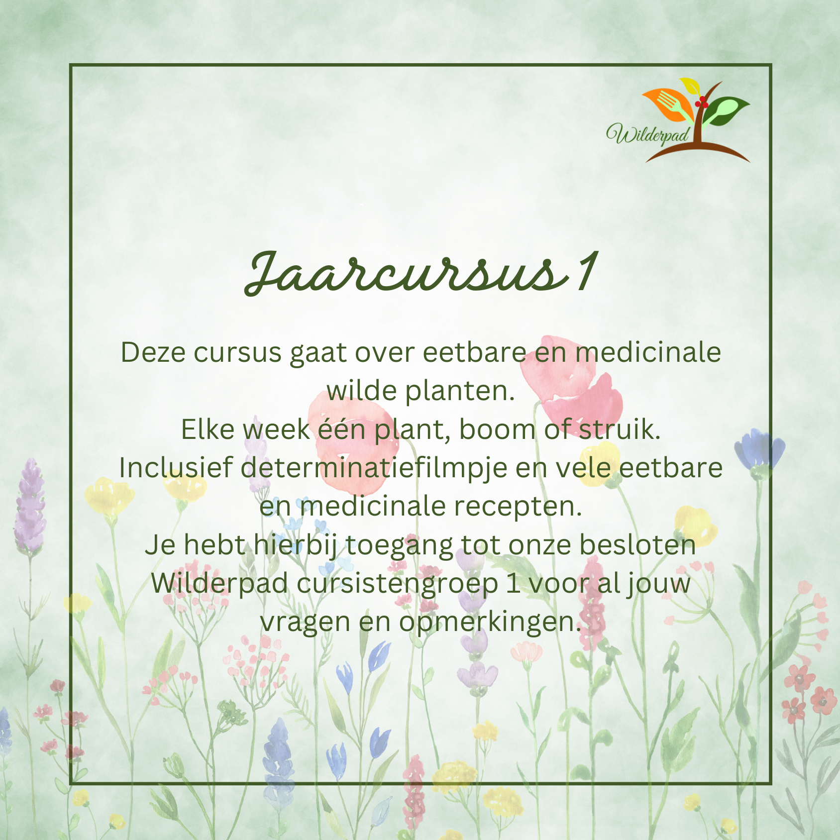 Je krijgt per week een uitgebreide les over een plant, kruid of boom. Met een (video)determinatie, achtergrondverhalen, recepten en informatie over de inhoudsstoffen. De medicinale werking krijg je eveneens mee.