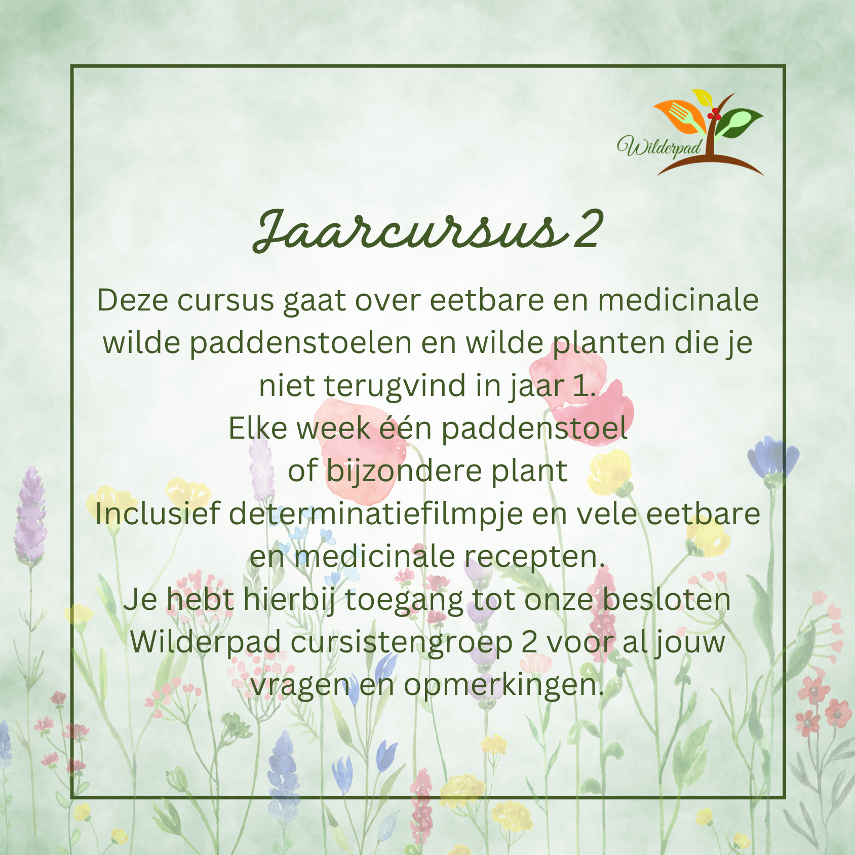 Een jaar met veel paddenstoelen. En planten en kruiden die in cursusjaar 1 nog niet aan bod kwamen. Verbreding én verdieping dus.