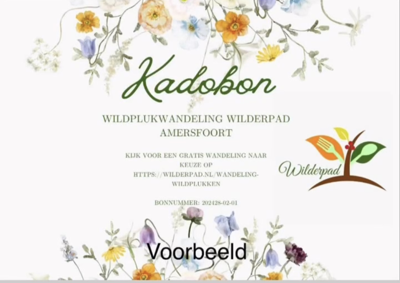 Misschien heb jij iets te vieren of ben je op zoek naar een cadeautje voor iemand. We bieden een mooie kadobon aan voor een wildplukwandeling. De geplande wandeldagen kun je vinden op deze site, vaak in Amersfoort overigens.